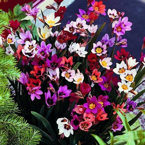 Sparaxis (Sparaxis tricolor) is a stunning, vibrant bulbous plant known for its large, star-shaped, multicolored blooms. This mixed variety offers a dazzling palette ranging from bright yellows and oranges to vivid reds, soft whites, and purples. Sparaxis is the perfect choice for those who wish to bring a touch of exotic summer charm, joy, and color to their garden.