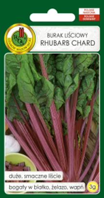 Liście bardzo duże, pokarbowane, bordowo zielone. Częścią jadalną są duże, mięsiste liście przyrządzane jak szpinak oraz soczyste ogonki liściowe. Najsmaczniejsze są młode liście i ogonki liściowe.